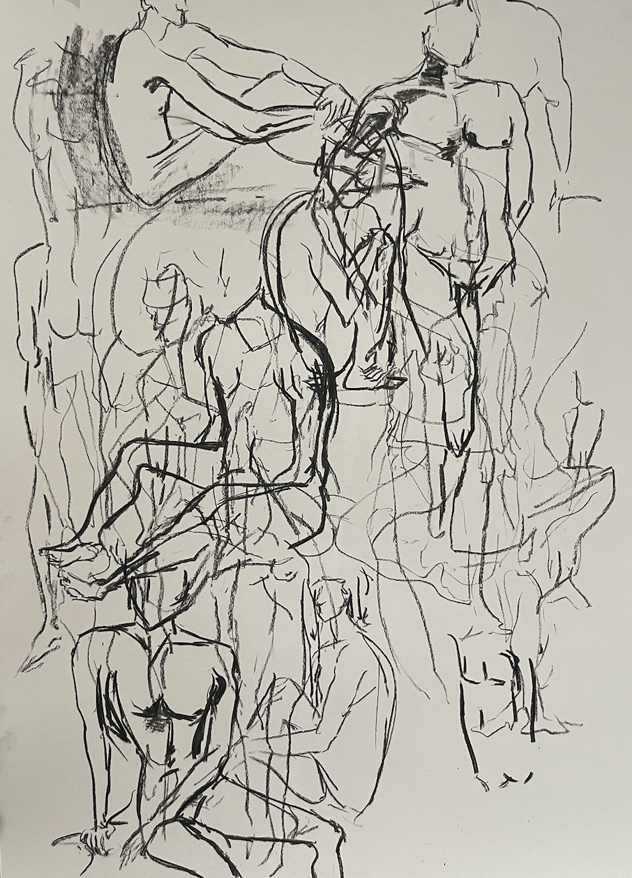 Quickly grabbing my charcoal I make my attempt at bringing to life this age-old myth. And in some small way, I use my drawing to question. To explore the themes that have made the tale of Narcissus such an enduring one – vanity, self-worth, love, death.